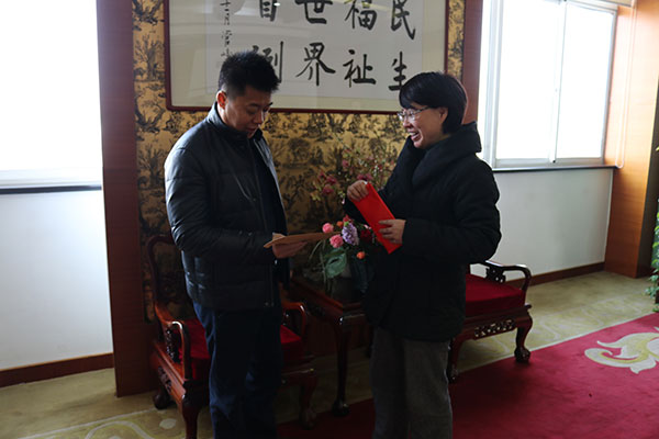 春节前,2月7日,江阴市总工会主席刘文红一行来我村慰问全国劳动模范、村党委书记李洪耀,向李洪耀表达新春的问候,并送上慰问金。