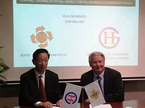 11月,舟山长宏国际船舶修造有限公司和新加坡X-PRESS FEEDER成功签订6艘2700TEU环保型支线箱船建造合同。