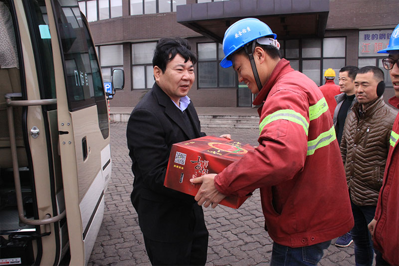 又讯:1月27日,领导们还来到集团企业长强钢铁、长达钢铁5号码头,给春节期间奋战在工作一线的员工送上了新年祝福和慰问品。